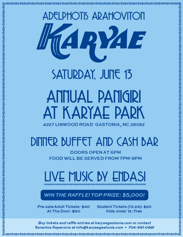 Its a new year and time to renew your annual membership to the Adelphotis Arahoviton Karyae. Yearly dues are $50 per person.